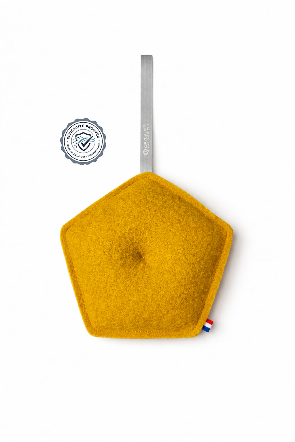 Grâce à son coussinet en laine spécialement conçu pour laisser passer l’air, notre purificateur d’air maximise le contact avec son principe actif breveté AIRPURLABS®. Ce design unique lui permet d’absorber et de retenir efficacement les polluants présents dans l’air intérieur, comme les Composés Organiques Volatils (COV) et particulièrement le formaldéhyde, un polluant cancérigène courant. Compact et pratique, il s’intègre facilement dans toutes les pièces de vie pour offrir un environnement plus sain et agréable.